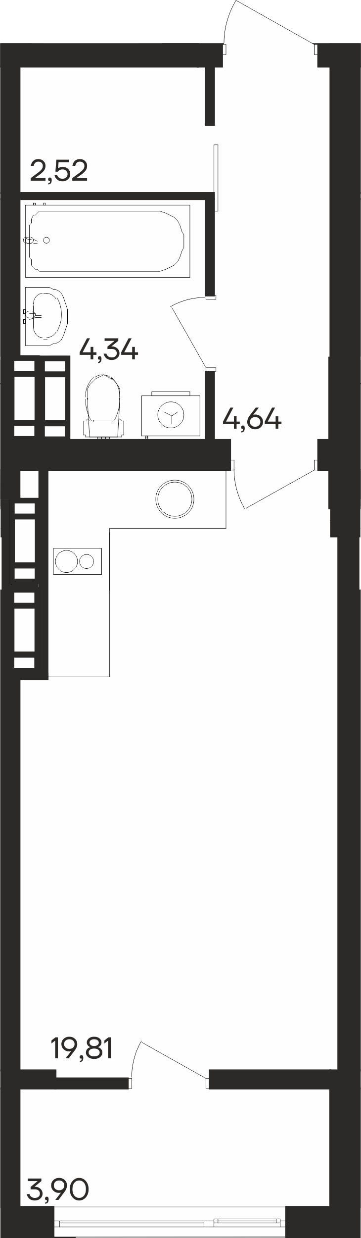 Планировка Студия в ЖК Северное Сияние