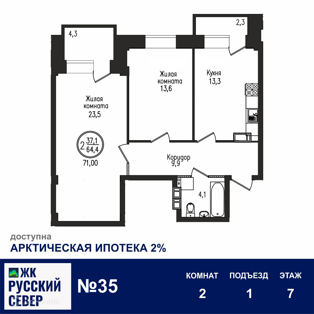 Описание квартиры в "ЖК РУССКИЙ СЕВЕР"