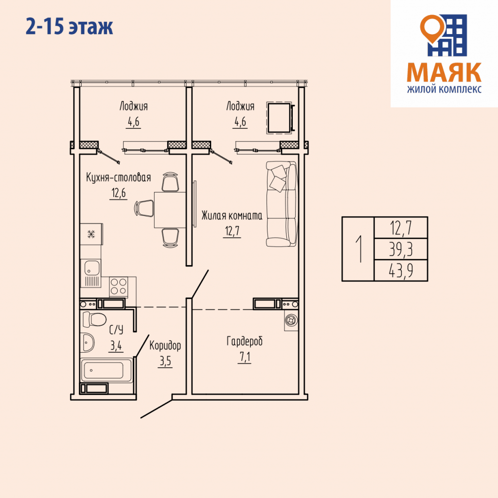 Доступна к покупке 1-комнатная квартира в современном жилом комплексе "Маяк" 🏢. Квартира расположена на 2-м этаже 15-этажного дома. Прекрасный выбор для инвестиций.