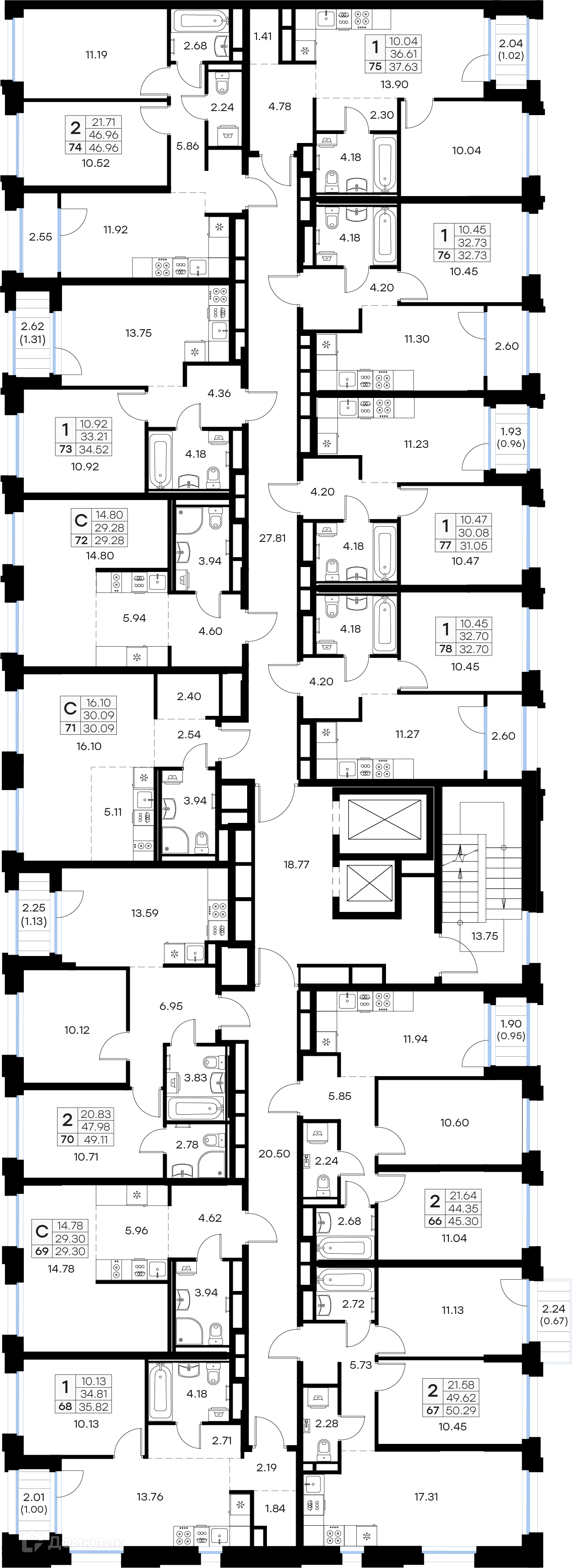 Площади квартир