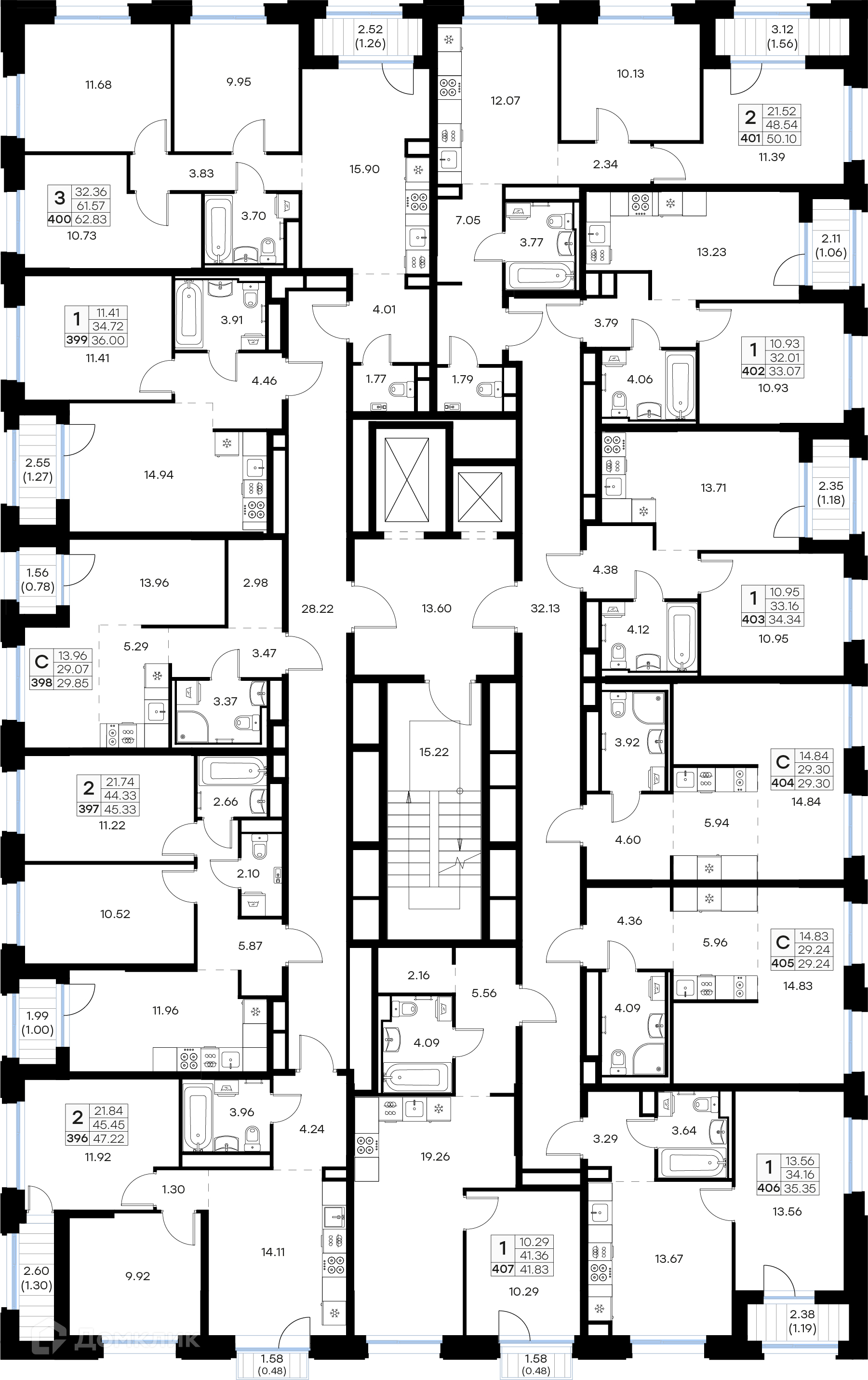 Площади квартир